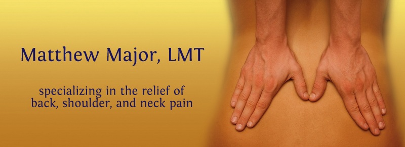 These sessions are solution-oriented and highly focused. Matt will evaluate the musculoskeletal causes of your pain and develop a plan to address them. Modalities employed may include orthopedic evaluation, deep tissue, Swedish, neuromuscular therapy (trigger point), myofascial, muscle energy technique, Thai, sports, stretching and other techniques to correct posture and relieve chronic pain. Typical dysfunctions addressed include: